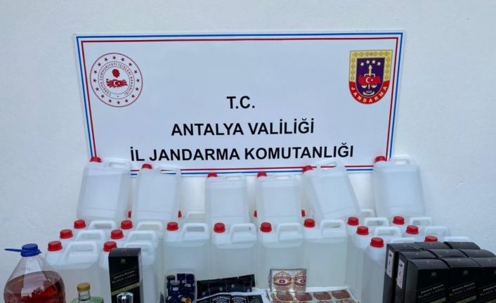 Antalya’nın Aksu ilçesinde jandarma tarafından düzenlenen operasyonda kaçak 250 litre etil alkol, 20 litre viski, 2 litre votka ele geçirildi.