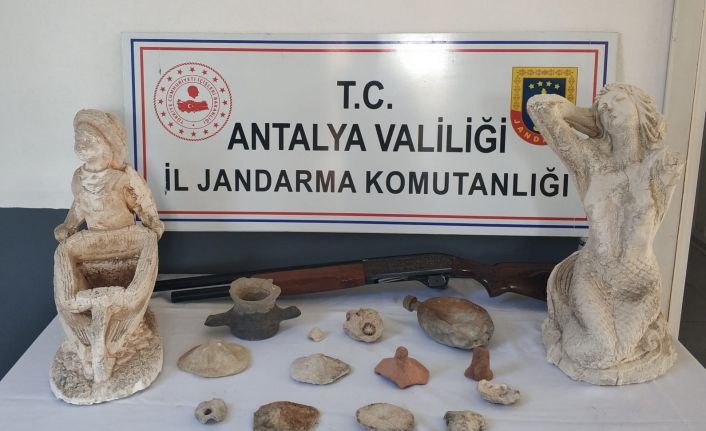 Antalya’da jandarma tarafından yapılan operasyonda Roma dönemine ait olduğu değerlendirilen taş ve bronz objeler ele geçirildi.