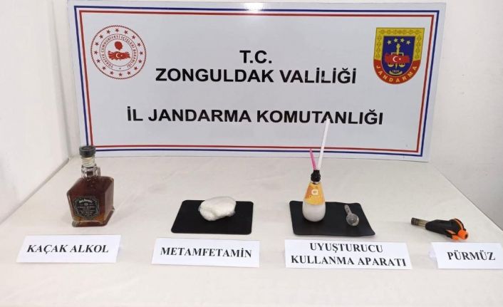 Zonguldak İl Jandarma Komutanlığı ekiplerince, Kozlu ilçesi mülki sınırları içerisinde bir araçta ve içerisinde bulunan bir şüpheli üzerinde yapılan aramada 157 gram metamfetamin, 1 adet uyuşturucu kullanma aparatı, 1 adet pürmüz, 1 adet bandrolsüz kaçak alkol ele geçirildi. Olayla ilgili Cumhuriyet Başsavcılığının talimatları çerçevesinde adli makamlara sevk edilen şüpheli tutuklanarak ceza infaz kurumuna gönderildi.