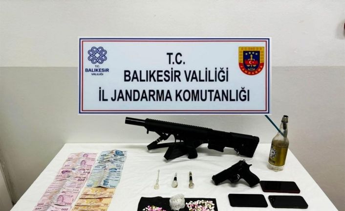 Balıkesir İl Jandarma Komutanlığı ekipleri, uyuşturucu madde imalatı ve ticaretine yönelik yürüttüğü istihbari çalışmalar neticesinde, Balıkesir’in Altıeylül ilçesinde uyuşturucu madde imalatı ve ticareti yapan şüphelilere ait hayvan çiftliği ve araçlarına yönelik geçtiğimiz gün operasyon düzenledi. Gerçekleştirilen operasyonda; 328 adet ecstasy uyuşturucu hap, 14,5 gram metamfetamin, bir gram kokain, bir sentetik uyuşturucu hap, 4 adet uyuşturucu kullanma aparatı (payp), bir tabanca, bir av tüfeği, 5 cep telefonu ve suçtan elde edilen 10 bin 180 TL para ele geçirildi. Olaya karışan 6 şüpheli ise yakalanarak haklarında adli işlem başlatıldı.