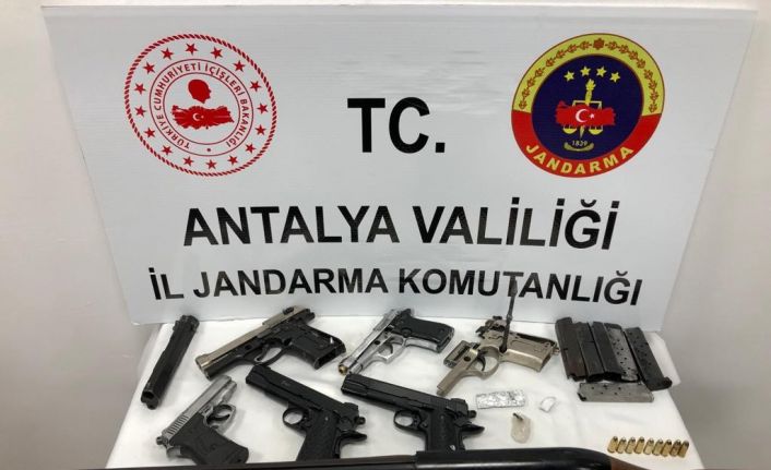 Antalya’da bir iş yerine baskın yapan jandarma, uyuşturucu ve kurusıkıdan bozma tabancalar ele geçirdi.