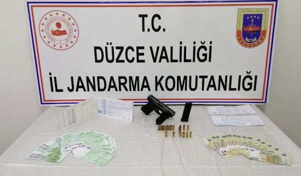 Düzce İl Jandarma Komutanlığı ekipleri gelen ihbar üzerine yağma suçu işleyen çeteye operasyon düzenlendi. İl Jandarma Komutanlığı’na bağlı ekiplerin katıldığı operasyonda çete üyelerinin iş yerlerine ve evlerinde arama yapan jandarma ekipleri, çok sayıda senet, çek ile birlikte 1 adet ruhsatsız tabanca ve 10 bin 300 Euro sahte para yakaladı.