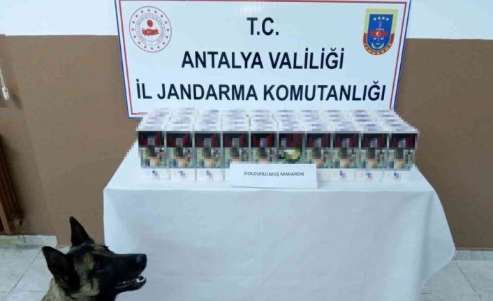 Antalya’da jandarmanın yol kontrol noktasında durdurduğu bir otobüsünün bagajında çay ve tütün arama köpeği ‘Zarif’ ile birlikte yapılan aramada, poşet içerisinde bandrolsüz 10 bin adet içi dolu sigara makaronu ele geçirildi.