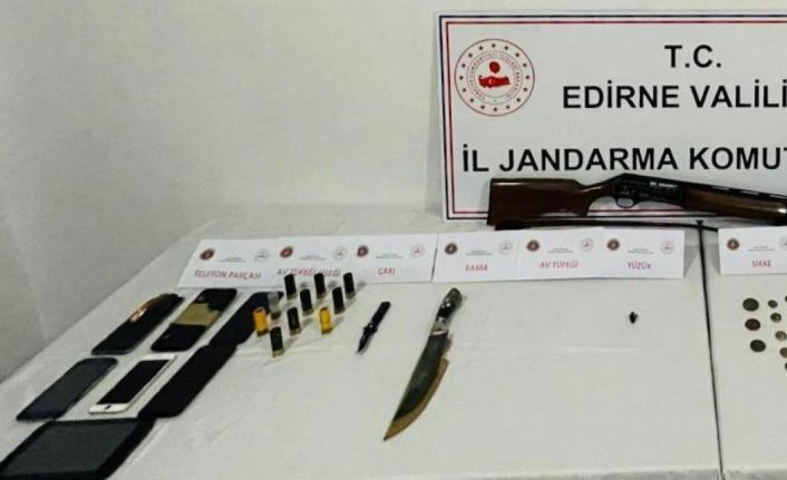 Edirne Jandarma Komutanlığı ekipleri tarafından uyuşturucu ticaretini önlemek amacıyla bir evde düzenlenen operasyonda, tarihi eser olduğu değerlendirilen objeler de ele geçirildi.