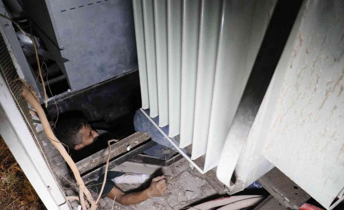 Adana’da trafodan kablo çalmak için içeri girdiği öne sürülen kişi içeride yere düştükten sonra demirlerin arasına sıkıştı. Vatandaşların ihbarı üzerine olay yerine gelen polis ekipleri, hırsızlık şüphelisi kişiyi yakaladı. Trafoya giren şüpheli, uyumak için girdiğini söyledi.