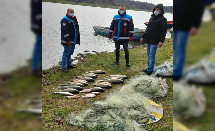 Kırklareli’nde baraj gölüne serilen 800 metre ağ ele geçirildi.