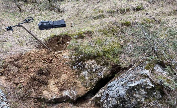 Kastamonu’da define bulmak için ormanlık alanda kaçak kazı yapan 2 kişi, jandarma ekipleri tarafından suçüstü yakalandı.