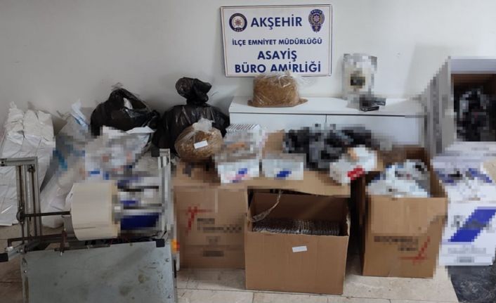 Edinilen bilgiye göre, Akşehir İlçe Emniyet Müdürlüğü Asayiş Büro Amirliği ekipleri, İstasyon Mahallesindeki bir evde kaçak tütün ile sigara dolumu yapıldığı yönündeki ihbar üzerine harekete geçti. Cumhuriyet Başsavcılığı koordinesinde adrese operasyon düzenleyen polis ekipleri, yaptıkları aramada 2 adet elektrikli sigara dolum cihazına hava basan kompresör, 3 adet elektrikli makaron dolum makinesi, 1 adet sigara paketleme makinesi, 27 kilogram kıyılmış tütün, 55 bin 560 adet tek dal sigara 37 bin 200 adet boş makaron ve çok sayıda boş sigara paketi ele geçirildi. Ele geçirilen malzemelerin piyasa değerinin yaklaşık 450 bin TL olduğu tespit edildi. Aramalarda ele geçirilen malzemelere Asayiş Büro Amirliği ekiplerince el konulurken, kaçak malzemelerle yakalanan M.K., A.K., T.K., M.A., E.Ç., ve M.A. isimli şüpheliler gözaltına alındı. Asayiş Büro Amirliğine getirilen 6 şüpheli hakkında adli işlem yapıldı. Şüphelilerden M.K., A.K., T.K., M.A. ve E.Ç. haklarında yapılan adli işlemin ardından adliyeye sevk edilirken, M.A. ise ifadesinin ardından serbest bırakıldı.