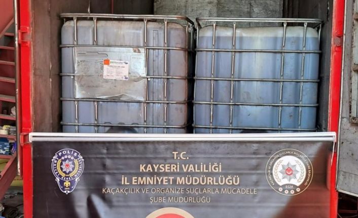 Kayseri İl Emniyet Müdürlüğü Kaçakçılık ve Organize Suçlarla Mücadele Şube Müdürlüğü’ne bağlı Kaçakçılık Suçları Büro Amirliği ekipleri tarafından 2 şahsın ikametlerine ve 2 kamyona eş zamanlı operasyon düzenlendi. Operasyonda yapılan aramalarda 12 ton karışımlı akaryakıt, 15 adet 1 tonluk tank, 1 adet 2.5 ton kapasiteli elektronik kantar, 1 adet 2.5 ton kapasiteli forklift ve 1 adet elektrikli yakıt aktarımında kullanılan santrafiş ele geçirildi. Ekipler tarafından ele geçirilen materyallere el konulurken, olayla ilgili 2 kişi gözaltına alınarak işlemleri yapılmak üzere emniyete götürüldü.