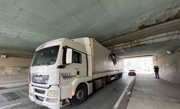 Kadıköy’ün Fikirtepe Mahallesinde halı yüklü bir tır köprü altındaki alt geçitten geçmeye çalışırken dorsesi köprüye takıldı. Takılan dorsesi sebebiyle manevra yapamayan tır, 3 saat süren uğraşlar sonucu kurtarılabildi.