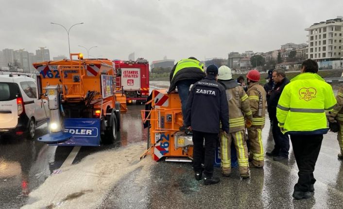Kadıköy D-100 Karayolu’nda çalışma yapan İstanbul Büyükşehir Belediyesi’ne (İBB) bağlı kar küreme ve tuzlama aracı kayganlaşan yolda devrildi. Kaza yapan kar küreme aracının sürücüsünün yapılan kan tahlillerinde alkollü olduğu belirlendi.