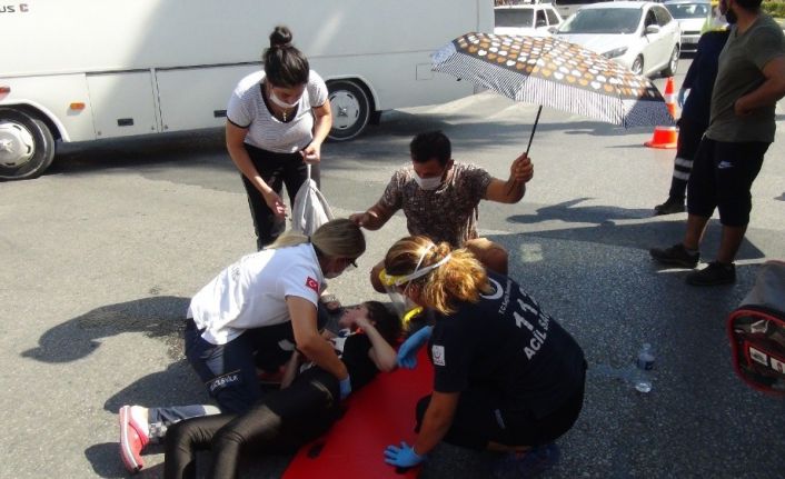 Antalya’nın Manavgat ilçesinde yaya geçidinden geçen genç kıza otomobil çarptı. Çarpmanın etkisiyle yaralanan genç kızı vatandaşlar şemsiyeyle güneşten korumaya çalıştı. Kaza yapan otomobili kullanan kadın sürücü, genç kızın başından bir an olsun ayrılmadı.