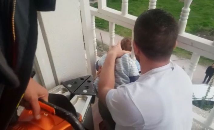 Aksaray’da balkon demirine kafası sıkışan 3 yaşındaki çocuk itfaiye ekiplerinin müdahalesiyle kurtarıldı.