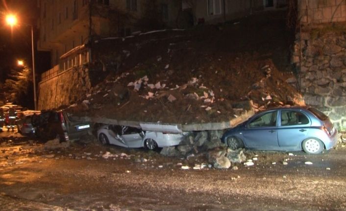 Kağıthane’de istinat duvarı çöktü, 4 araç enkaz altında kaldı