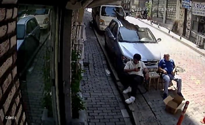 Kağıthane’de kaldırımda oturan bir kişinin üzerine ikinci kattan kedi düştü. Kedinin adamın üzerine düştüğü anlar kameraya yansıdı.