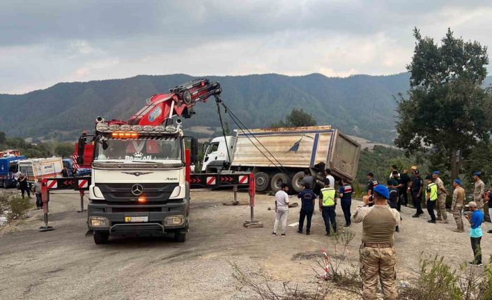 Kahramanmaraş’ta cenaze defneden kalabalığın arasına dalarak 5 kişinin ölümüne, 25 kişinin de yaralanmasına neden olan kamyon vinç yardımıyla olay yerinden kaldırıldı.