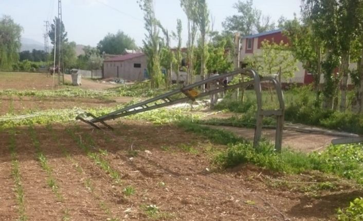Kahramanmaraş’ın Elbistan ilçesinde çıkan fırtına, kavak ağaçlarını devirip demir elektrik iletim hatlarını kopararak direklere zarar verdi.
