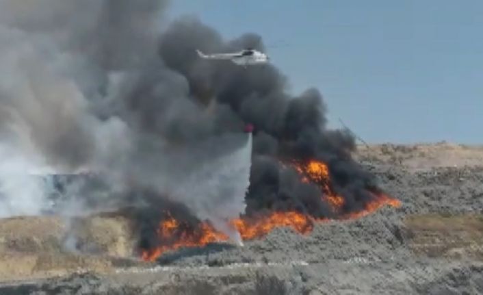 Kahramanmaraş’ta katı atıkların bulunduğu alanda çıkan yangına müdahale ediliyor.
