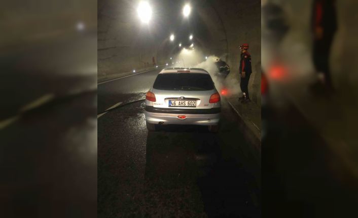 Yangın, Göksun istikameti Nuri Pakdil Tüneli içinde seyir halindeki otomobilde çıktı. 46 AHS 602 plakalı Peugeot marka otomobilin motor kısmı yanmaya başladı. Sürücüsü yanan otomobili tünel içerisinde sağa çekip itfaiyeye haber verdi. Ekipler, olay yerine gelerek yanan otomobili söndürdü.