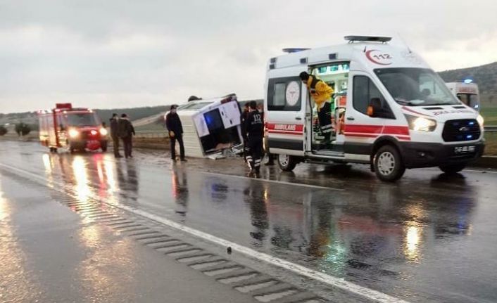 Edinilen bilgiye göre, sabah saatlerinde Kahramanmaraş-Pazarcık karayolunun 21. kilometresinde M.B.’nin (38) kullandığı 46 ACT 468 plakalı minibüs, Pazarcık istikametine doğru seyir halindeyken Seyrantepe mevkisine geldiğinde sürücünün direksiyon hakimiyetini kaybetmesi sonucu refüje çıkarak yan yattı.