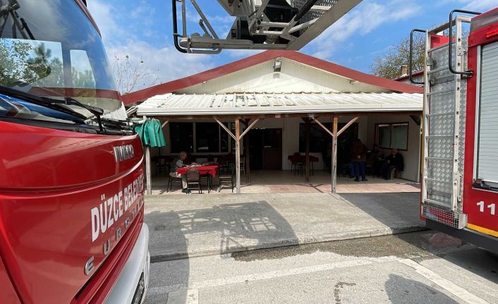 Olay, Düzce’nin Dereli Tütüncü Mahallesi’nde bulunan bir kahvehanede meydana geldi. Edinilen bilgiye göre, işletme sahibi kahvehanedeki sobayı yaktıktan sonra bacada yangın çıktı. Borulardan çıktığı düşünülen dumanların çatıdan geldiğini fark eden işletme sahibi, hemen çatıya çıkarak alevlere müdahale etti. İhbar üzerine olay yerine itfaiye ve polis ekipleri sevk edildi. İtfaiye ekipleri çatıda soğutma çalışması yaptığı sırada içeride tavla ve okey oynayan müşteriler ise yerlerinden kalkmayarak oyunlarına devam etti. Yangınla ilgili inceleme başlatıldı.