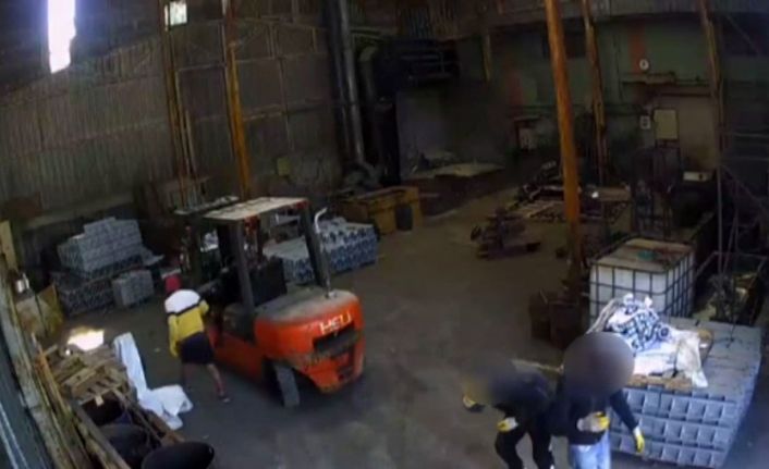 Görüntülerde, kamyonetle içeriye giren hırsızlar depodaki çinkoları kaldırıyor. Kamyonetin kasasına malzemeleri yükleyen şahıslar, dakikalar içerisinde el birliğiyle hırsızlığı gerçekleştiriyor. Hırsızlardan biri kamyonetin üstünde çinkoları kasaya yerleştirirken, sopayla da güvenlik kamerasına vuruyor. Hırsız vurarak açısını değiştirdiği kamera tarafından görüntülenmekten kurtulamıyor.