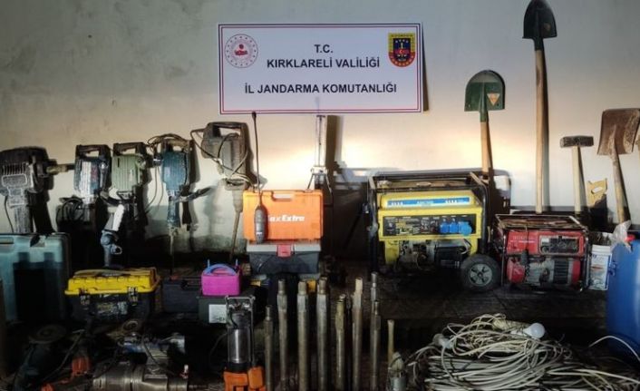 Şüphelilerin kullandığı çadır, araç ve kazı alanında yapılan aramada; 6 adet kırıcı delici matkap, 2 adet karot makinesi, 2 adet jeneratör, 2 adet spiral makinesi, 3 adet su pompası, 1 adet elektrikli el testeresi, 1 adet gaz dedektörü, 2 adet 100 metrelik elektrik kablosu, 42 adet kazı malzemeleri ve 1 adet kamyonet ele geçirildi.