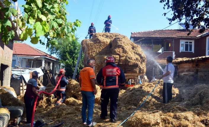 Sakarya’nın Karasu ilçesinde seyir halinde olan kamyonun elektrik tellerini kopartması neticesinde kasasında bulunan samanlar alev aldı. Yanan samanlar itfaiye ekipleri ve vatandaşlar tarafından söndürüldü.
