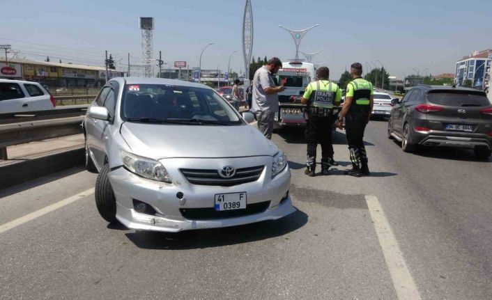 Kocaeli’nin İzmit ilçesinde kamyon, kör noktasında kalan otomobile çarptı. Sürüklenen otomobil bariyerlere çarparak durabildi, sürücü yaralandı.