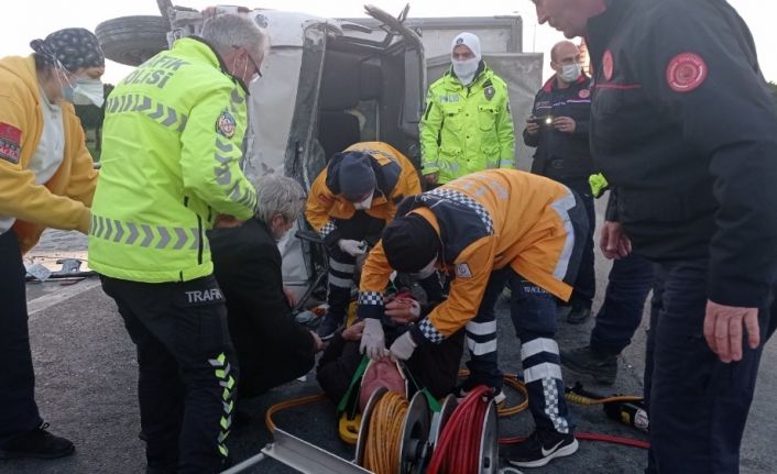 Kaza, akşam saatlerinde TEM otoyolu Kınalı gişeler mevkii İstanbul istikametinde meydana geldi. Sebahattin A. idaresindeki kamyonet, arıza nedeniyle emniyet şeridinde park halendeki Süleyman Ö.’ye ait minibüse arkadan çarparak devrildi. Süleyman Ö. ve minibüsteki 8 yaşındaki çocuk kazayı hafif yaralı atlatırken, kamyonet sürücüsü Sebahattin A. araç içinde sıkıştı. Sebahattin A. olay yerine gelen Silivri İtfaiye ekipleri tarafından sıkıştığı yerden çıkarılarak ambulansla hastaneye kaldırıldı.