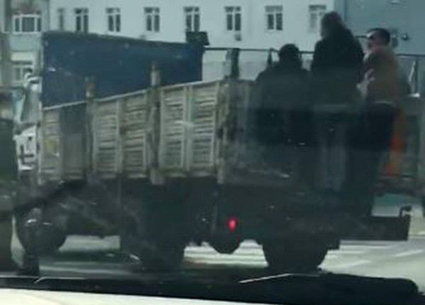 Tekirdağ’ın merkezi ilçesi Süleymanpaşa’da maskesiz 3 kişi, Hükümet Caddesi üzerinde seyir halinde olan kamyonetin kasasına asılarak yolculuk etti. Maske takmayan ve sosyal mesafeye de dikkat etmeyen 3 kişinin kamyonet kasasına asılı yolculuğu başka bir araçtaki vatandaşın cep telefonu kamerasına yansıdı. Hayrete düşüren görüntülerde bir süre sonra kamyonet başka bir sokağa dönerek gözden kayboldu.
