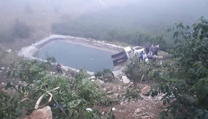 Mersin’in Erdemli ilçesinde bir kamyonetin uçuruma yuvarlanarak sulama havuzuna düşmesi sonucu 2 kişi yaralandı.