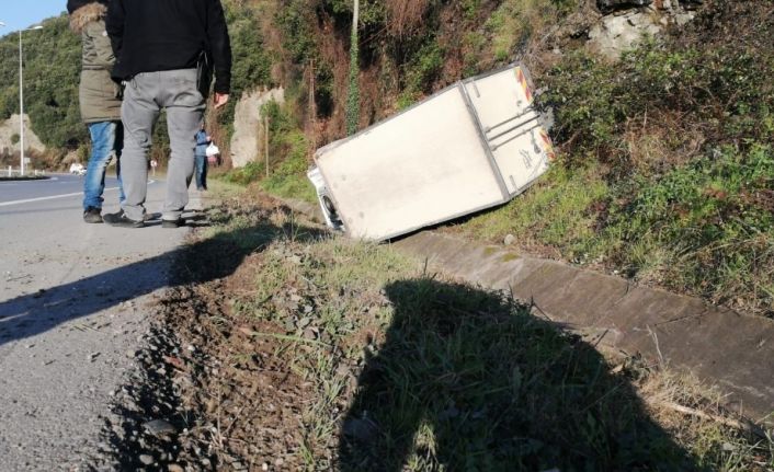Zonguldak’ın Ereğli-Alaplı ilçeleri arası karayolunun tersaneler bölgesinde yoldan çıkan kamyonet su kanalına devrildi. Kazada yaralanan sürücü hastaneye kaldırıldı.