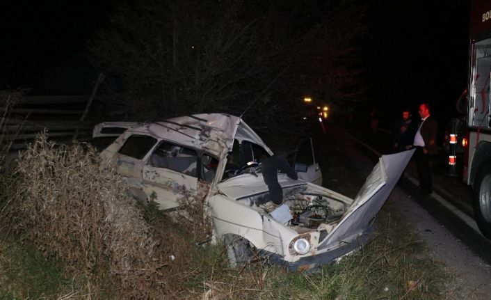 Bolu’da kamyonla çarpışarak hurdaya dönen otomobildeki 3 kişi olay yerinde hayatını kaybetti.