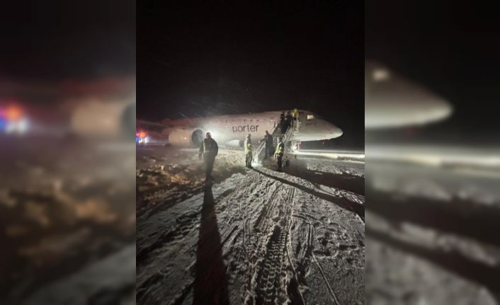 Kanada’da havalimanına 64 kişiyle iniş yapan yolcu uçağı, karla kaplı pistte kaydı. Yolcular pistten çıkan uçaktan 2 buçuk saat süren çalışmanın ardından tahliye edilebildi.