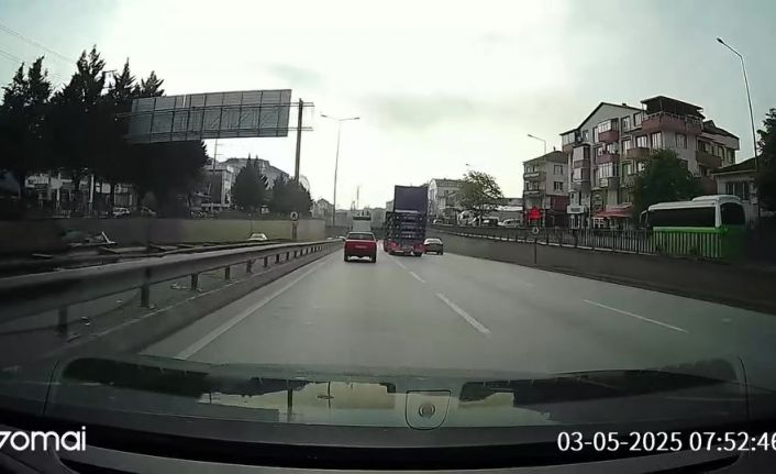 Kocaeli’de kapağı açık halde seyir halinde olan kamyon tehlike saçtı. Durumu fark edemeyen sürücü, D100 Karayolu Derince Tüneli’nden geçerken kaza yaptı. Kapağın tünele çarpması ile araç ve tünelde hasar meydana geldi. Çarpmanın şiddetiyle durumu fark eden sürücü aracı sağ şeride çekerek durdurdu. O anlar seyir halinde olan aracın kamerasına yansıdı.