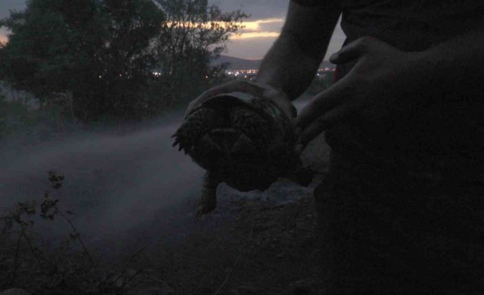Yangında otların arasında kalan bir kaplumbağa da itfaiye ekipleri tarafından kurtarıldı. İtfaiye hortumuyla serinletilen kaplumbağa, doğal yaşam alanına geri bırakıldı.