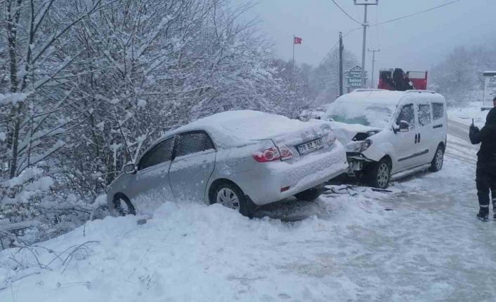 Bolu’dan Abant Gölü Milli Parkı’na seyreden iki otomobil kar nedeniyle kayganlaşan zeminde birbiriyle çarpıştı. Meydana gelen kazada 2 kişi yaralandı.