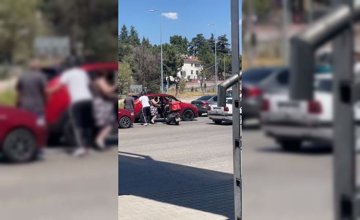 Karabük’te iki sürücü arasında yol verme nedeniyle çıkan tartışmada bir çocuk ve kadın ezilme tehlikesi yaşadı.