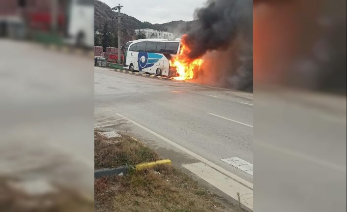 Marmaris’ten yola çıkan Kamil Koç firmasına ait 16 VU 404 plakalı yolcu otobüsünün motor kısmın dan dumanların yükseldiğini fark eden sürücü aracı yolun kenarına çekerek, hızlıca yolcuları tahliye etti.