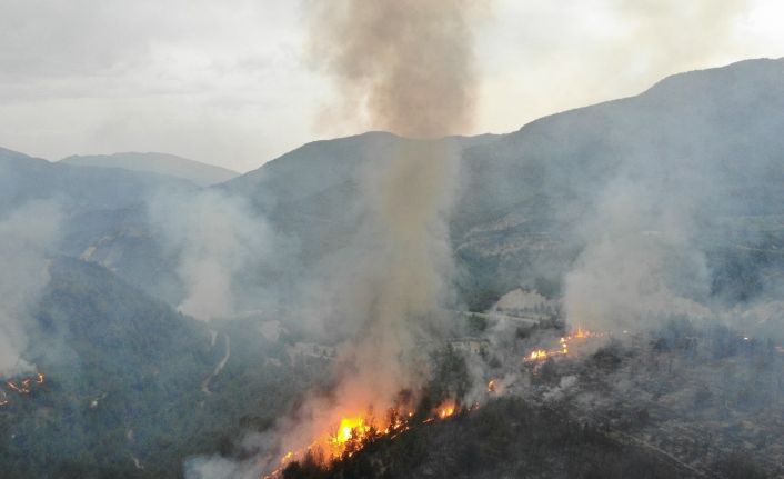 Karabük’teki orman yangını havadan görüntülendi