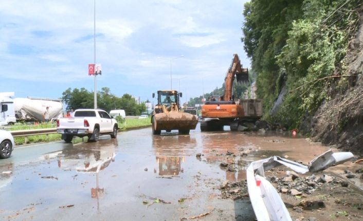 Rize’de şiddetli yağış nedeniyle meydana gelen kaya düşmesi sonucu, Karadeniz Sahil Yolu’nda heyelan yaşandı.