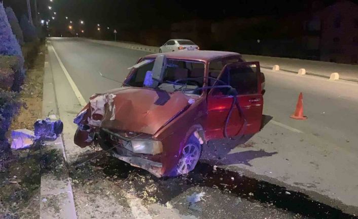 Karaman’da kontrolden çıkan otomobilin orta refüjdeki ağaç ve aydınlatma direğine çarpması sonucu sürücüsü yaralandı.