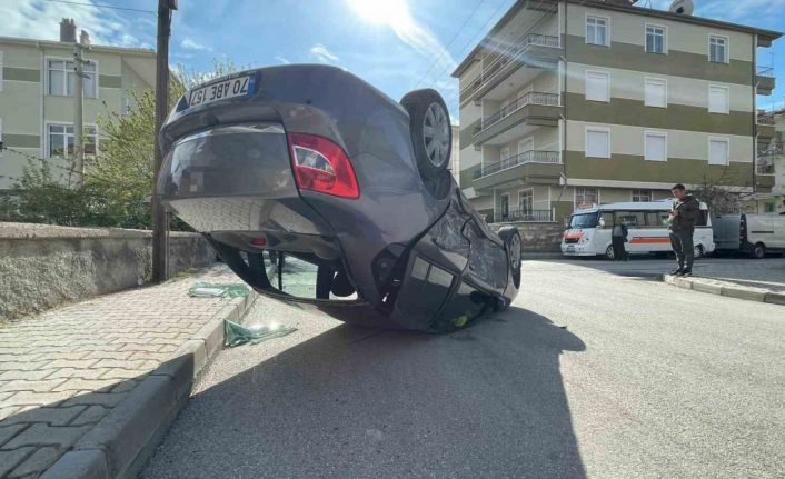 Karaman’da iki otomobilin kavşakta çarpışması sonucu meydana gelen trafik kazasında araçlardan biri takla atarak ters dönerken, 1 kişi yaralandı.