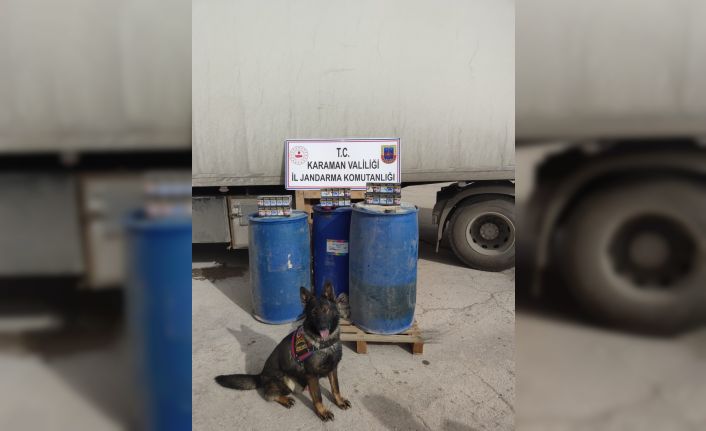Edinilen bilgiye göre, Karaman İl Jandarma Komutanlığına bağlı Kaçakçılık ve Organize Suçlarla Mücadele Şube Müdürlüğü ekipleri, Karaman-Ereğli karayolu üzerinde Ş.K. (30) idaresindeki tırı şüphe üzerine durdurdu. Tırda hassas burunlu köpekle arama yapan ekipler 100 paket kaçak sigara ile 460 litre kaçak mazot ele geçirdi.
