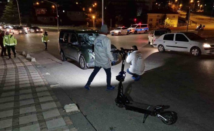Karaman’da hafif ticari araçla çarpışan scooterın sürücüsü çocuk ağır yaralandı.