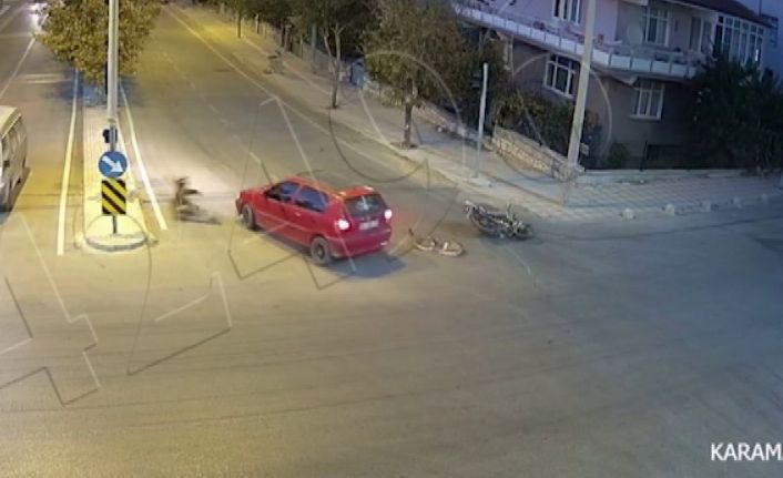 Karaman’da iki ayrı motosikletin karıştığı trafik kazası MOBESE kameraları tarafından görüntülendi. Yaşanan kazanın birinde otomobil ile çarpışan motosiklet sürücüsü 2 metre havalanarak refüje düştü.