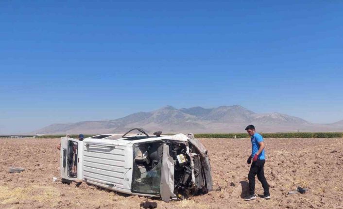 Karaman’da kontrolden çıkarak tarlaya takla atan panelvan minibüsün sürücüsü yaralandı.