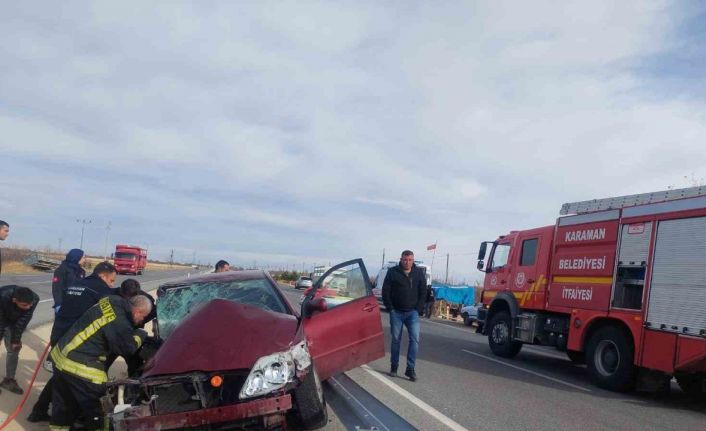 Karaman’da otomobil römork ve bariyerlere çarptı: 4 yaralı