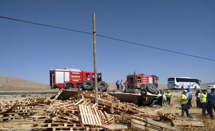 Karaman’da tahta palet yüklü kamyonun devrilmesi sonucu sürücüsü hayatını kaybetti.